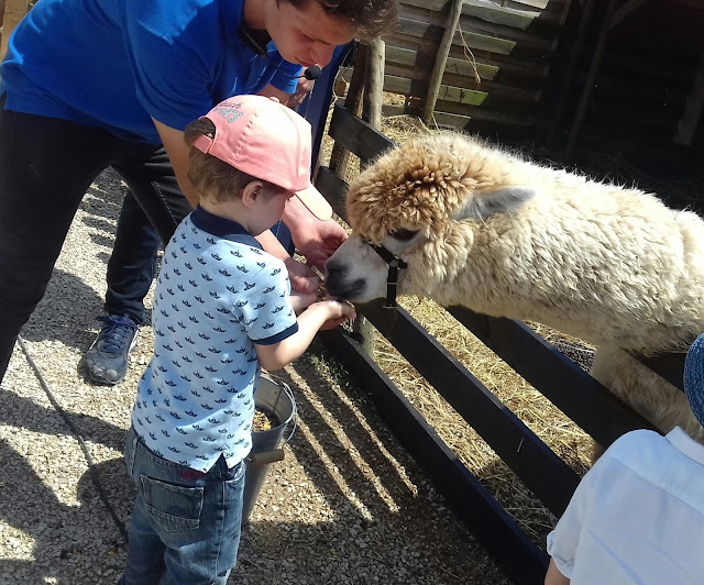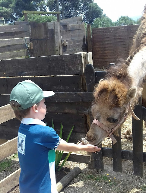 A quinta tem vários animais: póneis (como não podia deixar de ser :) ), ovelhas, cabras anãs, coelhos anões, galinhas, vacas, alpacas, dromedários, cangurus anões, veados anões... eu sei lá! E eles não só veem estes animais, como os podem alimentar à mão, aprender mais sobre eles e, claro, andar de pónei :)
